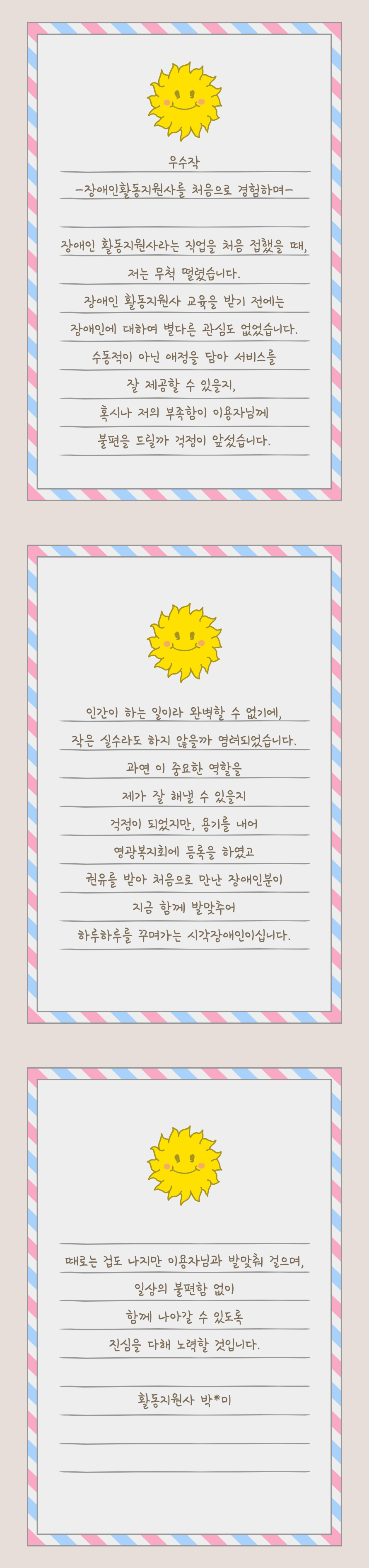 ![]() ![]() ![]() ![]() 2025년 12월 12일(금) 진행된 2025년 사업보고회 식순 중 장애인활동지원사업 수기공모전에 대한 |