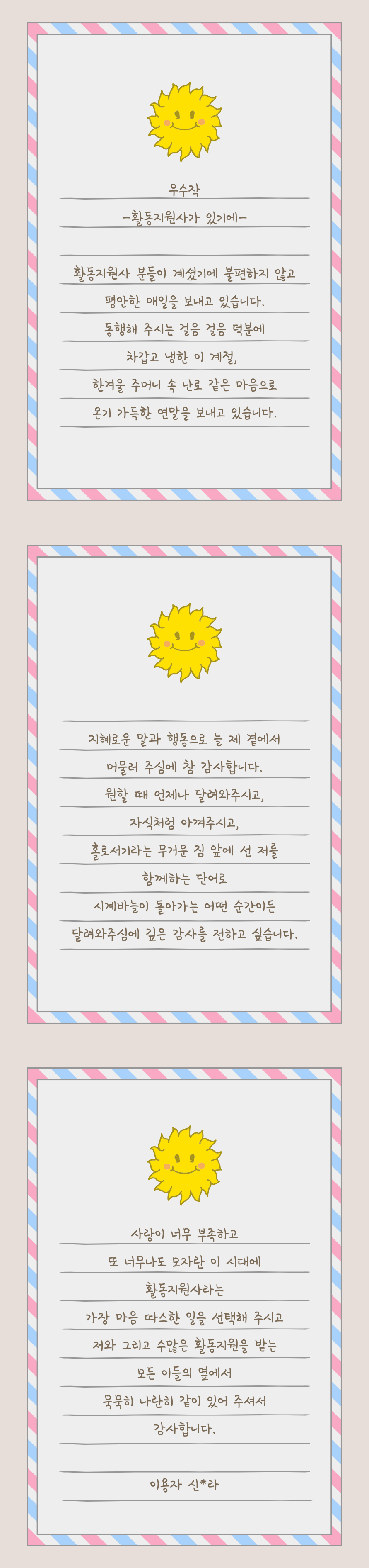 ![]() ![]() ![]() ![]() 2025년 12월 12일(금) 진행된 2025년 사업보고회 식순 중 장애인활동지원사업 수기공모전에 대한 |