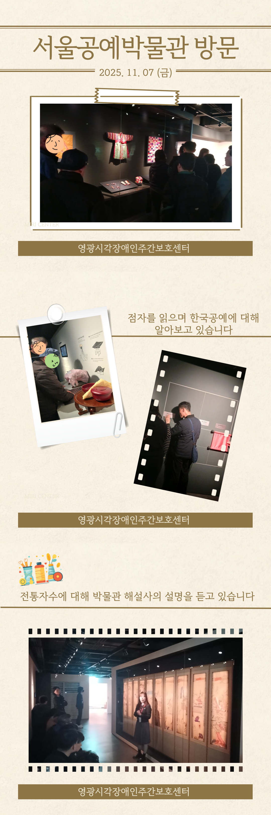 시각장애인의 생활/문화/예술의 능력을 향상시키고 완전한 사회참여와 평등의 기회를 제공합니다.