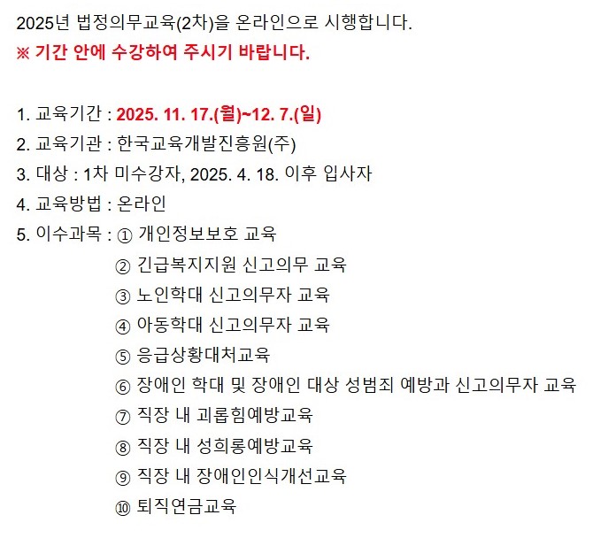 [장애인활동지원팀]2025년 법정의무교육(2차) 진행 안내