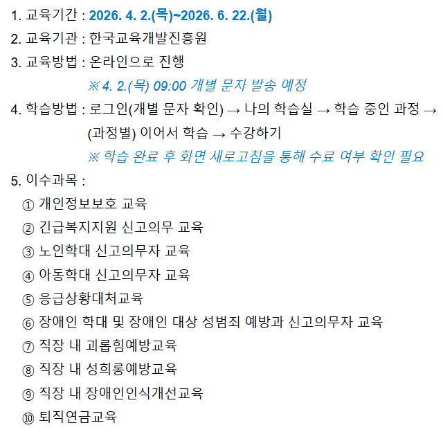 [사회서비스지원팀]2026년 법정의무교육 수강 안내