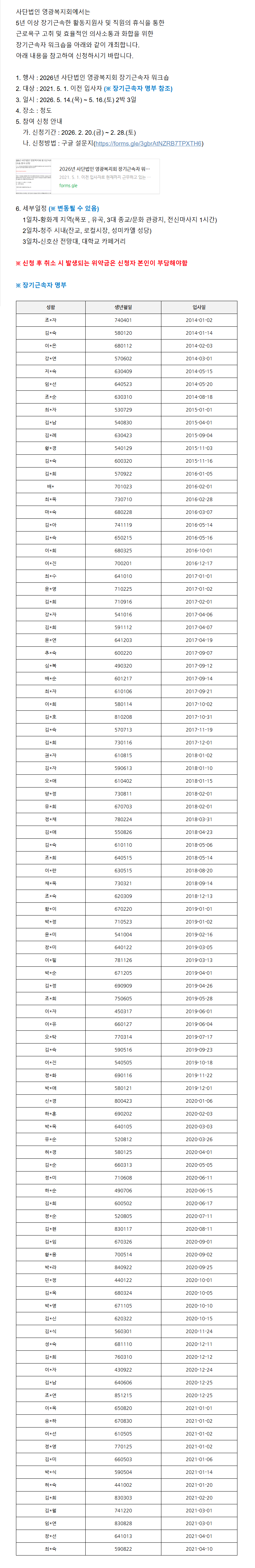 [사회서비스지원팀]2026년 사단법인 영광복지회 장기근속자 워크숍